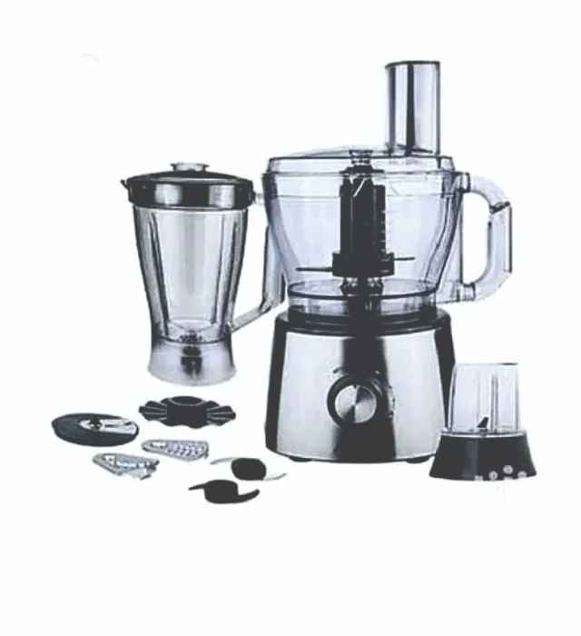 *Stainless steel chopper blade, plastic mixer blade, Emulsifying disc, shredding disc, Rough and fine slicer, french fries potato cutter, julienne and spatula.