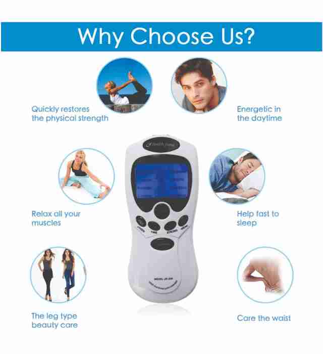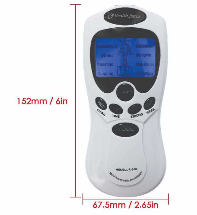 Description: 1. Digital display for treatment guide 2. Uses the infrared physical therapy electrodes 3. Improves your body circulation, relieves your pain and promotes your metabolism 4. Suitable for waist, shoulders, legs, foot massage and physical therapy do the physical therapy for the four parts of your body at the same time 4 therapeutic modes: vibrate thump, Shiatsu, Massage, Pat and Scrape therapy 8 Massage modes and 10 massage power levels 5. Comes with 4pcs of massage electrodes, a charger, a electrode wire 6. Power Supply: 3 x 1.5V batteries or 5V DC charger Features: 1. 4 proper therapeutic modes-press, vibrate, thump and rub 2. Different automatic Massager process is set according to the specific characteristics of shoulder waist, band & foot, and joint which makes your therapy pertinence 3. Two-way output, each by 2pcs massage pads, can work synchronously or work singly, the intensity can be changed in 15 levels 4. Slimming & fitness function 5. Timing: 15mins automatically, also can choose by manually from 0 to 30 minutes with step switch 6. It is obviously effective to alleviating the symptoms of cervical arthritis, and lumbar muscle strain. 8. It can ease peripheral nerve palsy and myalgia, also can promote blood circulation. Package Includes: 1 x Massager 4 x Electrode Pads 1 x USB Cable 1 x Power Adapter 1 x User Manual 1 x Connecting cable(2 way & 4 way)