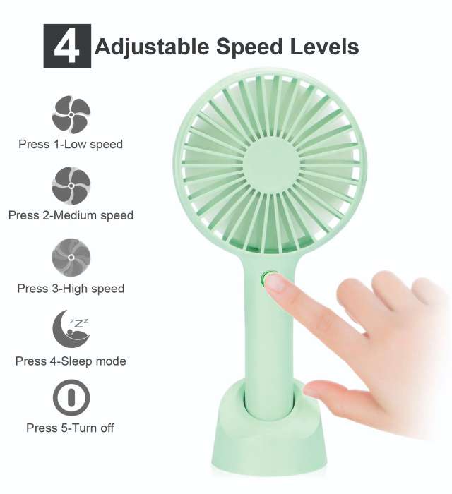 Three-Speed Adjustable: Mini Hand Fan Rechargeable has three adjustable speeds that can be switched easily by pressing the button. Low speed for a soft breeze at 3300 RPM that can accompany you while sleeping quietly. Medium speed produces cool wind, and high speed produces strong airflow at 5800 RPM, which helps you cool down in seconds. In a word, the HonHey mini fan can be a good helper for your hot flashes.