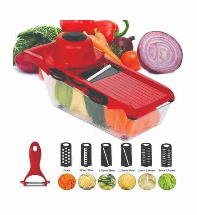 Product Information Name: Fruit & Vegetable Chopper 10 in 1 Mandoline Slicer Color: Red High-qualityThe mandolin slicer is made of ABS material, BPA free, keeping the original flavor of fruits and vegetables and ensuring healthy meals.